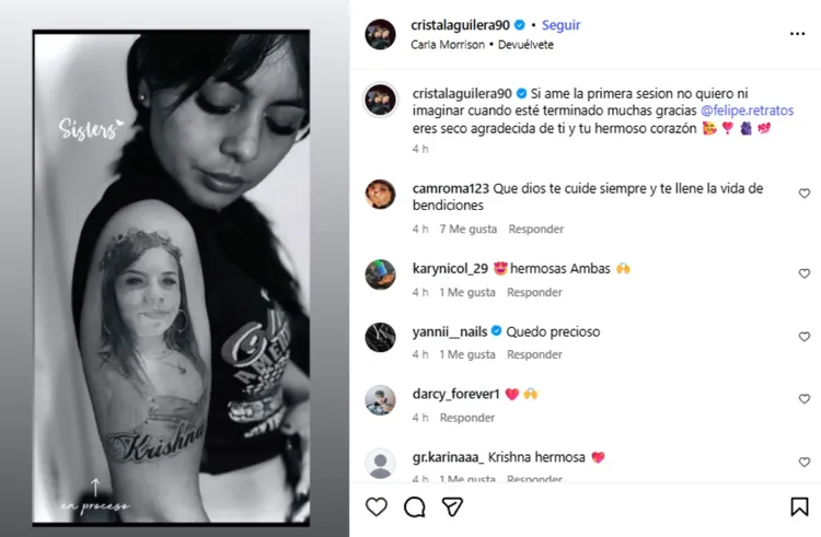 Ahora, en medio del dolor y la búsqueda de justicia, Cristal decidió homenajear a su hermana tatuando su rostro en uno de sus brazos. El gesto fue mostrado en Instagram, donde expresó: “Si amé la primera sesión, no quiero ni imaginar cuando esté terminado”, agradeciendo al artista detrás del diseño.