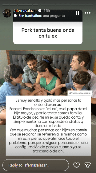 Cabe recordar que Fernanda Salazar y Francisco Dañobeitía terminaron su relación en 2018 y concretaron su divorcio en 2022. Desde entonces, ambos han seguido caminos distintos, pero han mantenido una relación cercana, respetuosa y enfocada en la crianza de su hijo.