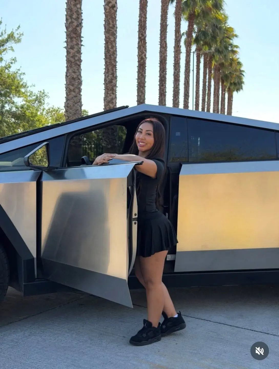 A través de su cuenta de Instagram, la influencer compartió imágenes de su Tesla Cybertruck, una camioneta pickup 100% eléctrica, conocida por su diseño futurista y su carrocería de acero inoxidable.