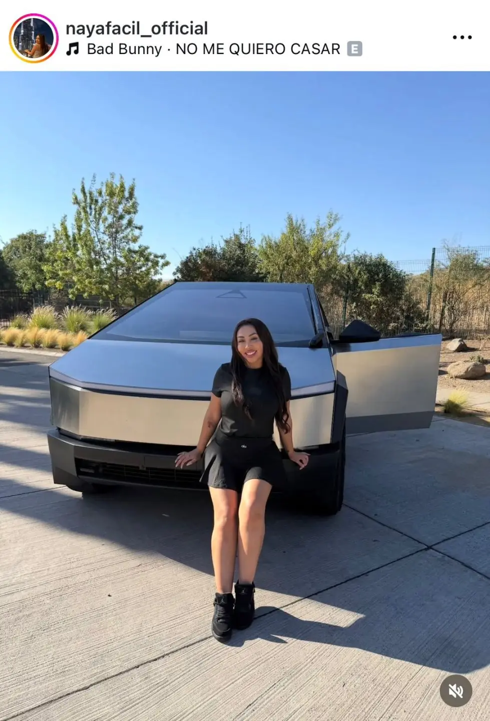 naya auto 4 La influencer mostró su nuevo Tesla Cybertruck, una camioneta eléctrica de diseño futurista cuyo valor en Chile supera los 100 millones de pesos, desatando una ola de reacciones.