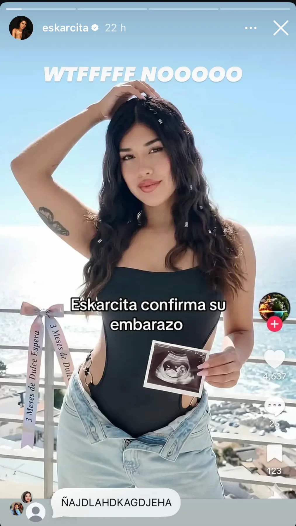 Todo surgió a partir de una imagen que se viralizó en distintas plataformas, donde la exchica reality aparecía sosteniendo lo que parecía ser una ecografía. En el registro también se veía una cinta con la frase “3 meses de dulce espera”, lo que encendió aún más las especulaciones.