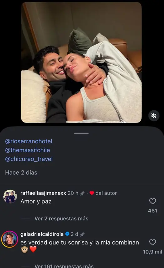 Por su parte, Gala Caldirola también comentó la publicación con una frase romántica. En el contexto de su escapada juntos, escribió: “Es verdad que tu sonrisa y la mía combinan”, reforzando el tono afectuoso de la publicación.