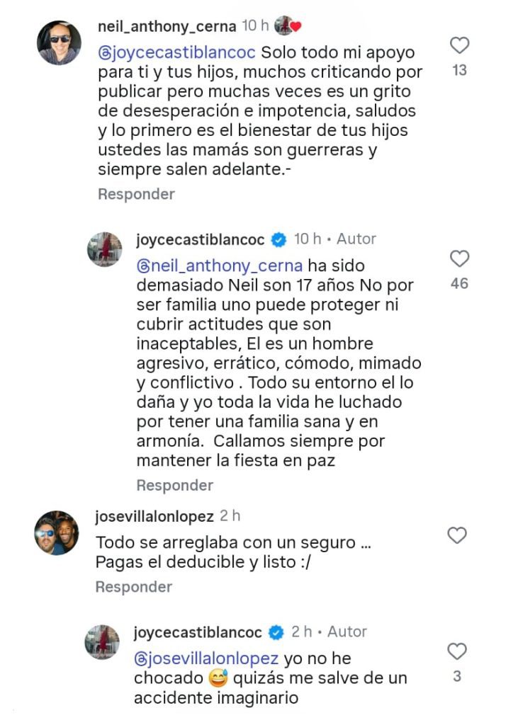 Visiblemente afectada, Joyce calificó este episodio como «desgastante», asegurando que no es la primera vez que la familia debe lidiar con las conductas erráticas del actor. Según su relato, el círculo cercano ha tenido que hacerse cargo de las consecuencias de los actos de Óscar por años. «Con mis hijos soy muy clara: no voy a permitir vínculo con alguien que ha cruzado límites importantes», sentenció, aludiendo a la exposición de menores sin permiso.